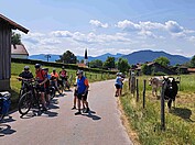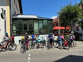 Am 27. Mai starten wir um 10.30 Uhr am Holzkirchner Bahnhof bei herrlichem Wetter zu unserer Tour durch das Tölzer Land. Durch Wiesen, Felder und Wälder radeln wir vor der Bergkulisse der bayerischen Voralpen zum Kloster Reutberg und dem wunderschönen Kirchsee. Sehr abwechslungs reich an blumenreichen Hochmooren vorbei erreichen wir Bad Tölz, wo wir uns in der malerischen Altstadt im Cafe Schuler etwas stärken können.Bevor wir in den Isarradweg einsteigen, bewundern wir von der Isarbrücke den Kalvarienberg mit der Wallfahrtskirche. Nach einem kurzem Stück entlang der Isar geht es wieder in das hügelige Voralpenland zum Bibisee bei Königsdorf und weiter nach Wolfratshausen, wo wir an der Floßlände den Start der Freizeitflößer nach München entdecken. Durch die Pupplinger Au radeln wir zum Holzwirt in Ascholding, wo wir einkehren.
